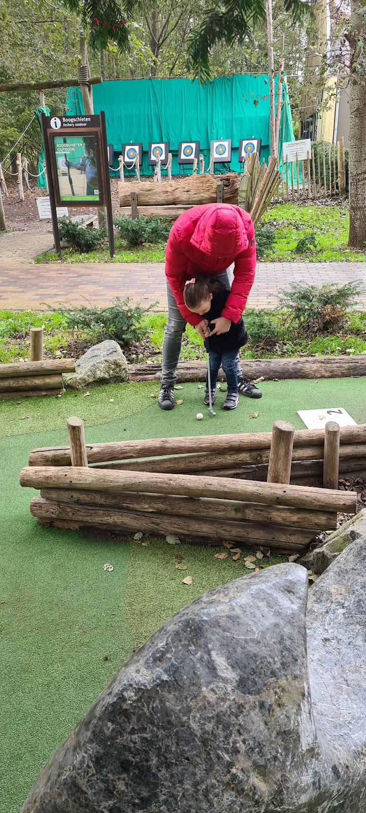Adventure Mini Golf Parc De Eemhof in Zeewolde is een vernieuwende en sfeervolle minigolfbaan die zich onderscheidt met een natuurlijke en avontuurlijke inrichting. De banen zijn aangelegd met kunstgras, hout en natuurstenen waardoor het spel een mooie, rustieke uitstraling krijgt. Dit maakt het een ideale plek voor gezinnen die op zoek zijn naar een uitdagende en toch toegankelijke activiteit.