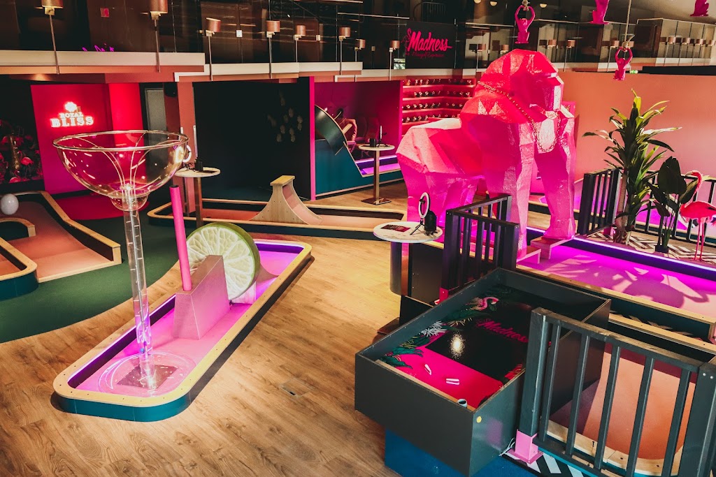 Madness Minigolf Experience in Warmond is dé plek voor wie op zoek is naar een verrassend en grappig midgetgolfuitje. Deze establishment biedt een unieke indoor ervaring met creatieve banen zoals een midgetgolfmolen, flipperkast en plingobaan, die zorgen voor veel plezier bij zowel kinderen als volwassenen. De ludieke opzet maakt het een ideale locatie voor kinderfeestjes, familiedagen of een uitje met vrienden.